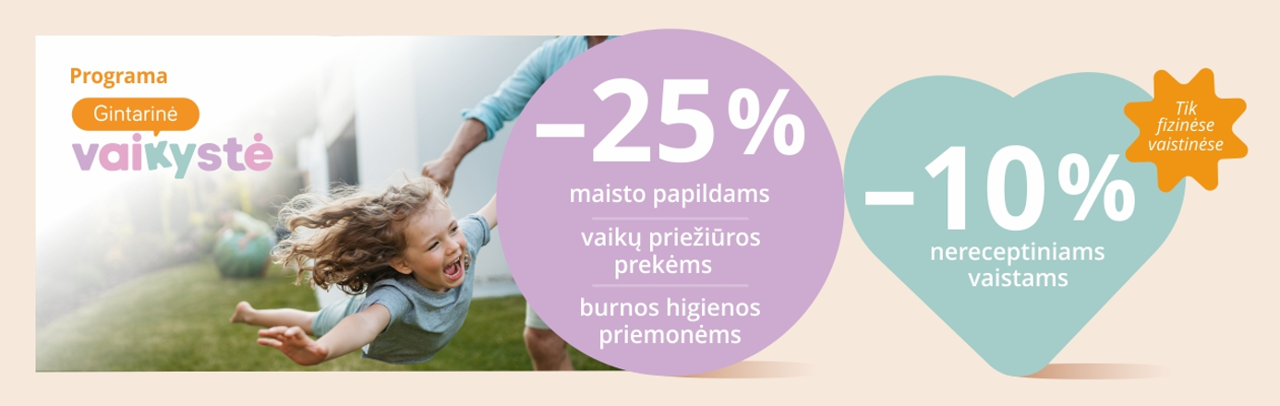 Programa „Gintarinė vaikystė“ skirta tam, kad mamos ir tėčiai galėtų naudotis ypatingais pasiūlymais, susijusiais su vaikų sveikata ir priežiūra